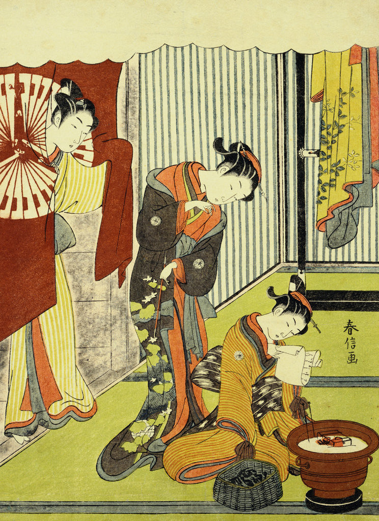 A Courtesan Looking at Her Shinzo Who is Reading a Love Letter