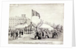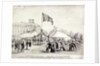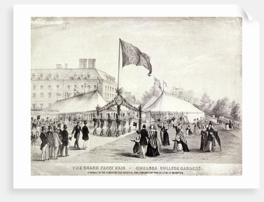 A fair held in the gardens of the Royal Hospital, Chelsea, London, c1842. Well-to-do people - the men in top hats - watch a military band. Marquees have been erected for the event, which was to raise funds for the new tuberculosis hospital at Brompton.