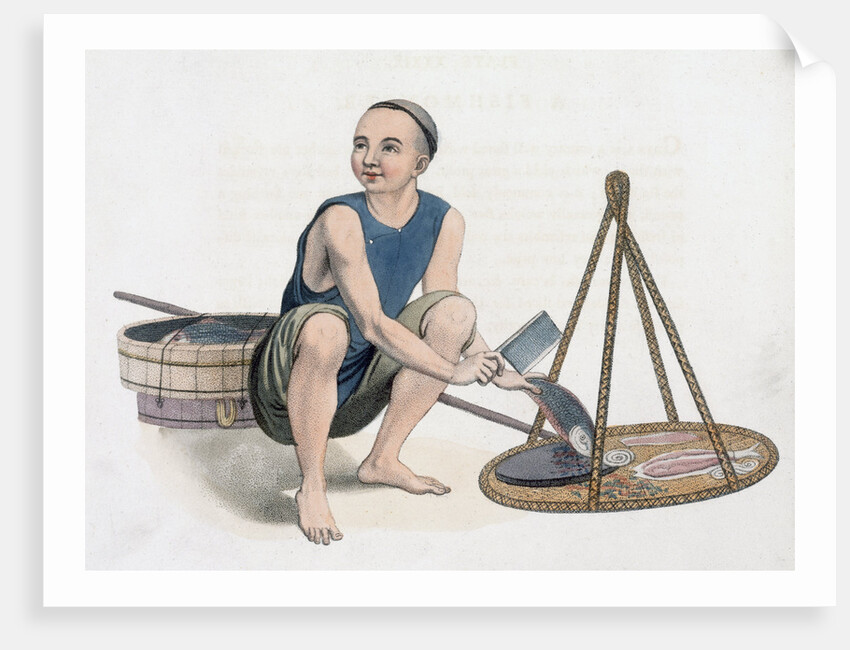 A fishmonger, 1800. Plate 39 from The Costumes of China by Major George Henry Mason.