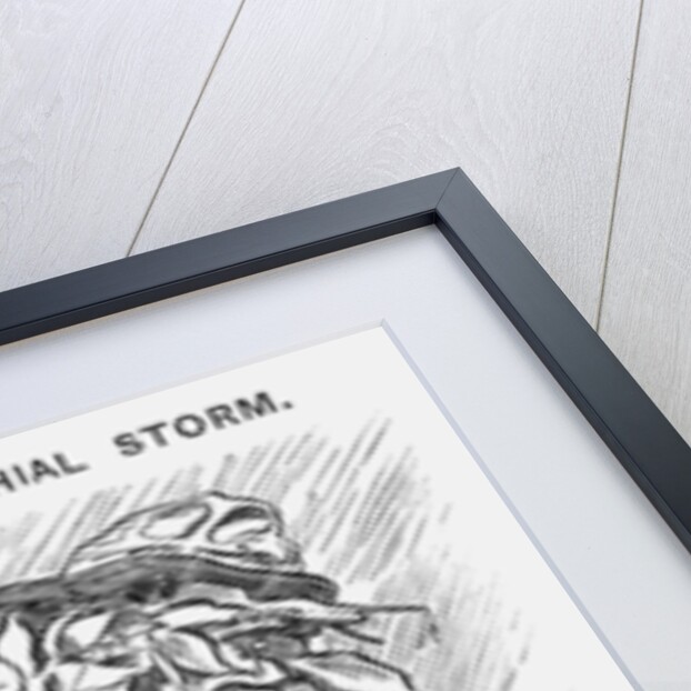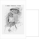 'A Great Parochial Storm', 1879. A weary plant struggles to keep upright in the face of some unseasonable summer weather. This little cartoon of a capital 'A' illustrates a satirical piece that accuses people of writing to The Times to complain about the weather as though the rain fell solely upon them. From Punch, or the London Charivari, August 30, 1879.