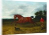 Product images of A groom with a terrier bringing in a high spirited stallion
