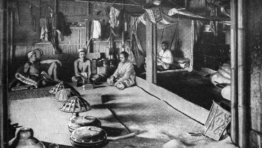 A Kalimantan native long house, Borneo, 1922. Illustration from Peoples of All Nations, Their Life Today and the Story of Their Past, volume II, British Empire to Dahomey, edited by J A Hammerton, (Educational Book Co, London, 1922).
