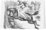 'A Leap in the Dark', 1867. This cartoon depicts Britannia, mounted on a horse with Disraeli's face, shielding her eyes as the horse jumps into the unknown 'Reform'. Behind her, John Bright, Gladstone and Lord Derby can be seen pulling up short of the hazard. On 15th July 1867, Disraeli's Reform Bill received its third reading in the House. There was again opposition from the usual quarters, including the Liberal MP, Mr Robert Lowe, who had been instrumental in bringing down his own party on this issue. Gladstone did not speak in this debate, but he had nonetheless been active in transforming the original plans put forward by the Conservatives. The Reform Act gave household suffrage to boroughs, brought the county franchise down to £12, gave votes to lodgers and broadened the scope of the planned redistribution of seats. Disraeli himself described the Bill as 'A Leap in the Dark'. From Punch, or the London Charivari, August 3, 1867.