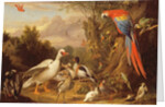 A Macaw, Ducks, Parrots and Other Birds in a Landscape, c.1708-10