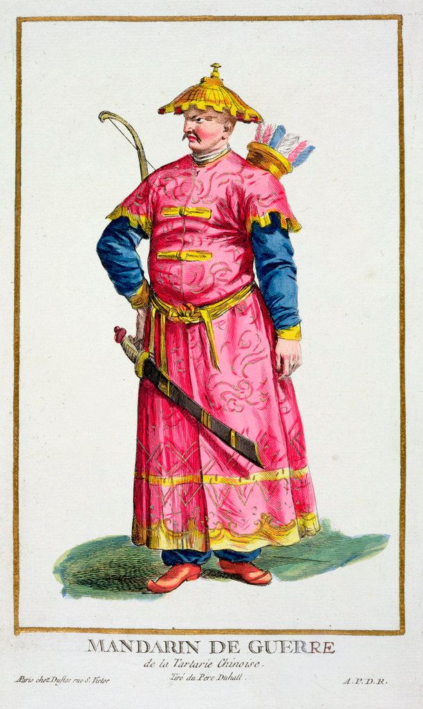 A Mandarin warlord, 1780. From Receuil des Estampes, Representant les Rangs et les Dignites, suivant le Costume de toutes les Nations existantes, by Pierre Duflos, 1780.