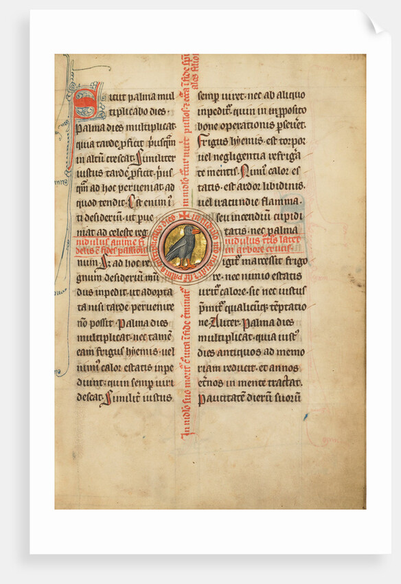 A Medallion with a Turtle Dove; Unknown; Thérouanne ?, France (formerly Flanders), Europe; fourth quarter of 13th century (after 1277); Tempera colors, pen and ink, gold leaf, and gold paint on parchment