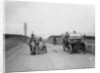 Product details A motorcycle and sidecar passing a car and cyclist on the road