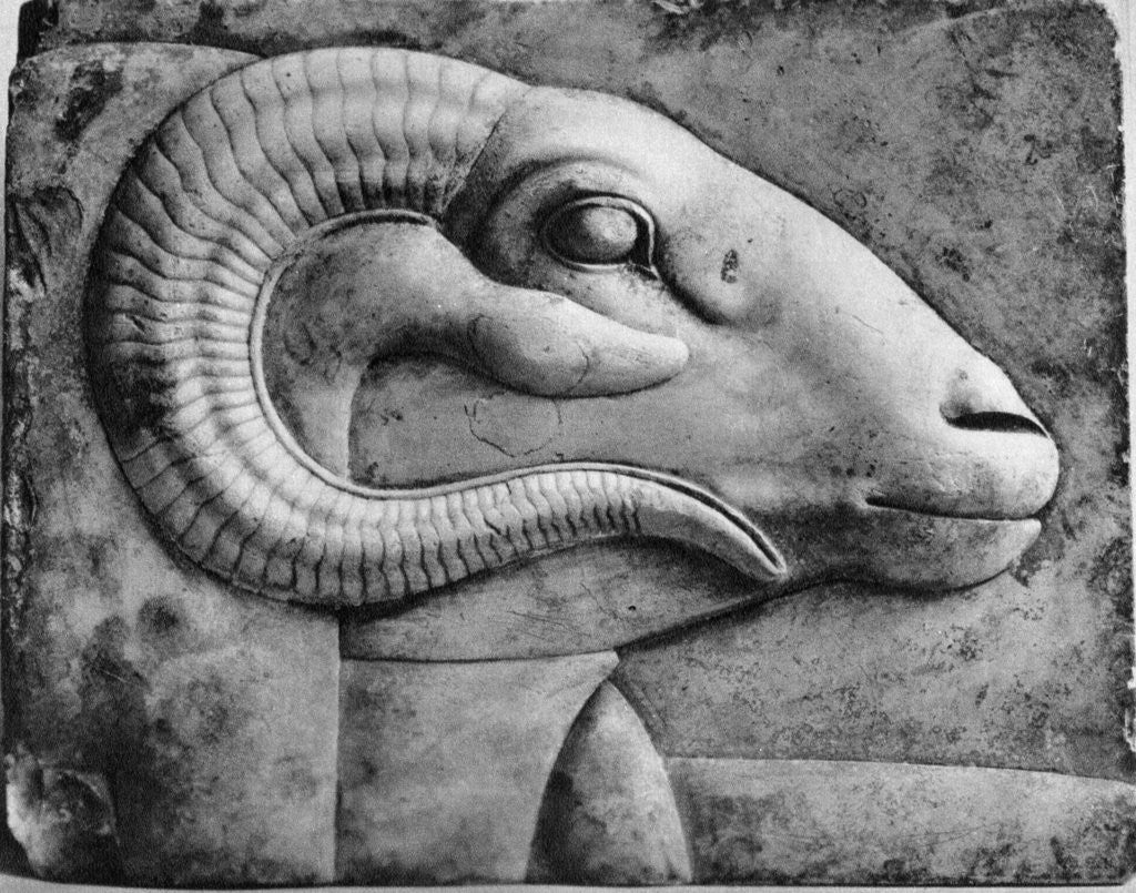 A ram's head, Egypt, 1936. Limestone model. Found in the collection of the Metropolitan Museum, New York. Plate taken from The Art of Ancient Egypt, published by the Phaidon Press (Vienna, 1936).