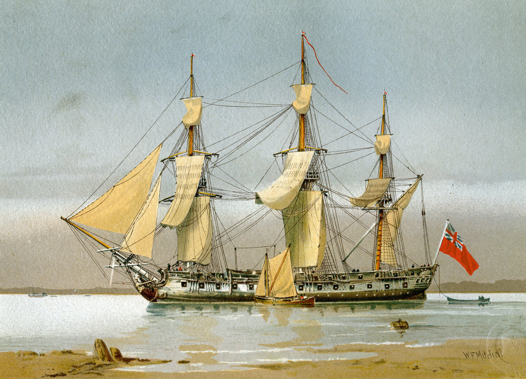 A Royal Navy 42 gun frigate, c1780 (c1890-c1893). A print from Her Majesty's Navy Including its Deeds and Battles, by Lieut Chas Rathbone Low, Volume I, JS Virtue & Co, London, 1890-1893.