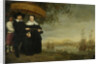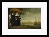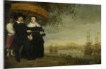 A Senior Merchant of the Dutch East India Company, Jacob Mathieusen and his Wife. Behind them, a Slave Holds a Pajong. The Dutch East India Company ships ready to sail home, in the background is the City of Batavia., Aelbert Cuyp, c. 1640 - c. 1660