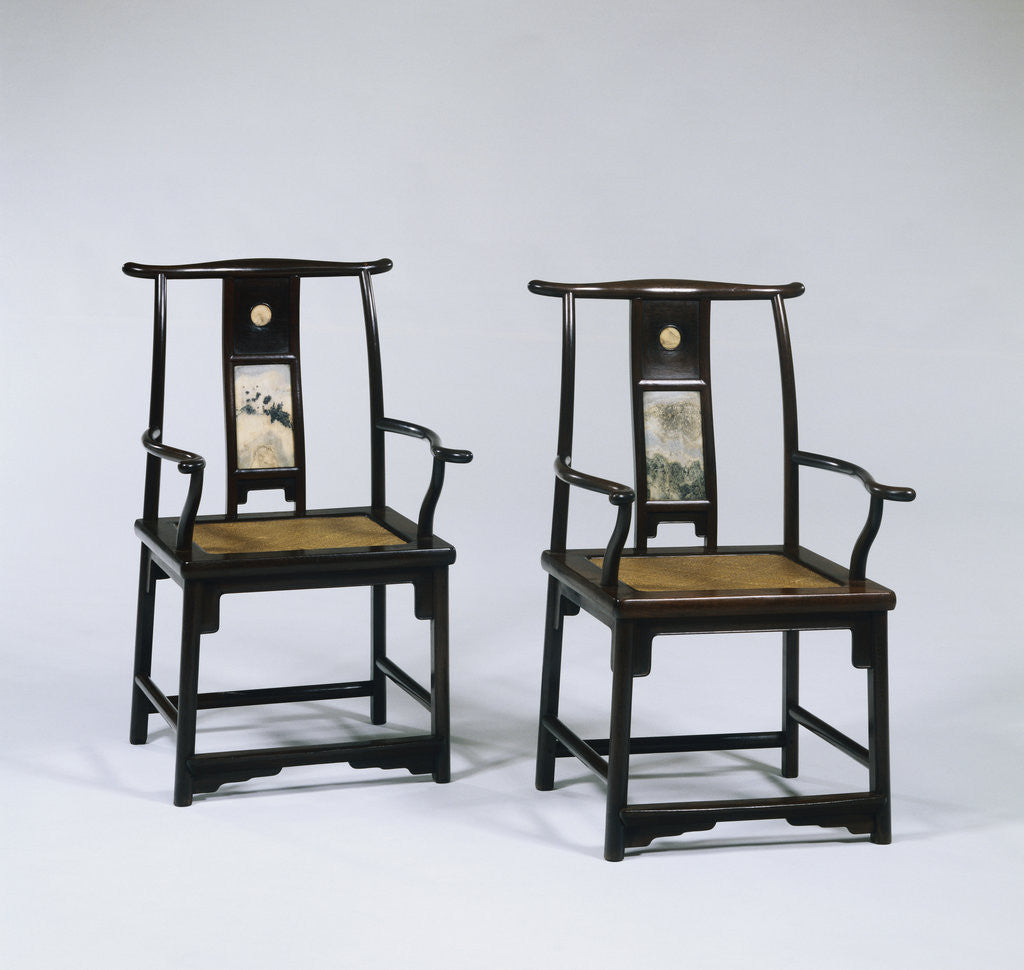 Product details A Set of Four Dali Marble-Inset Jichimu Yokeback Armchairs, "Guanmaoyi", 17th Century