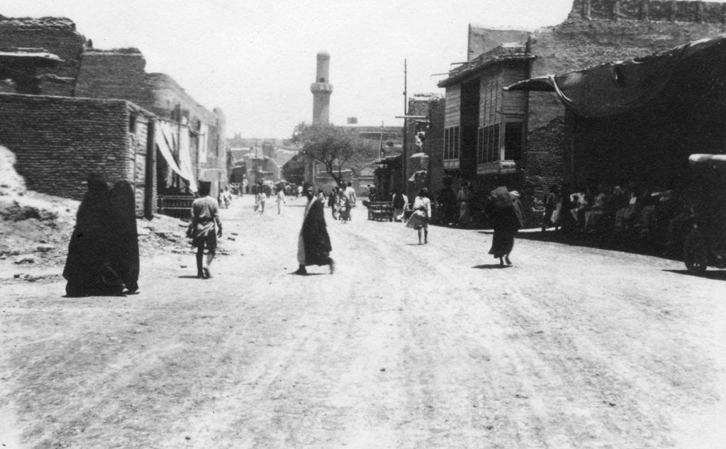 A street in Baghdad, Mesopotamia, WWI, 1918. Mesopotamia, formerly part of the Turkish Ottoman empire, was under British military control from October 1918. The new nation of Iraq came into being in 1921.