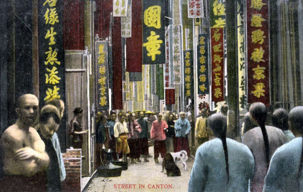 A street in Canton, China, c1900s. Published by Lau Ping Kee.