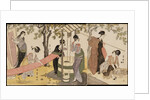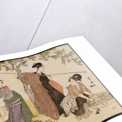 Product images of A triptych of girls washing and stretching cloth under the trees