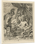 Achilles injures Telephos, print maker: J. Alexander Janssens, Victor Honoré Janssens, c. 1700