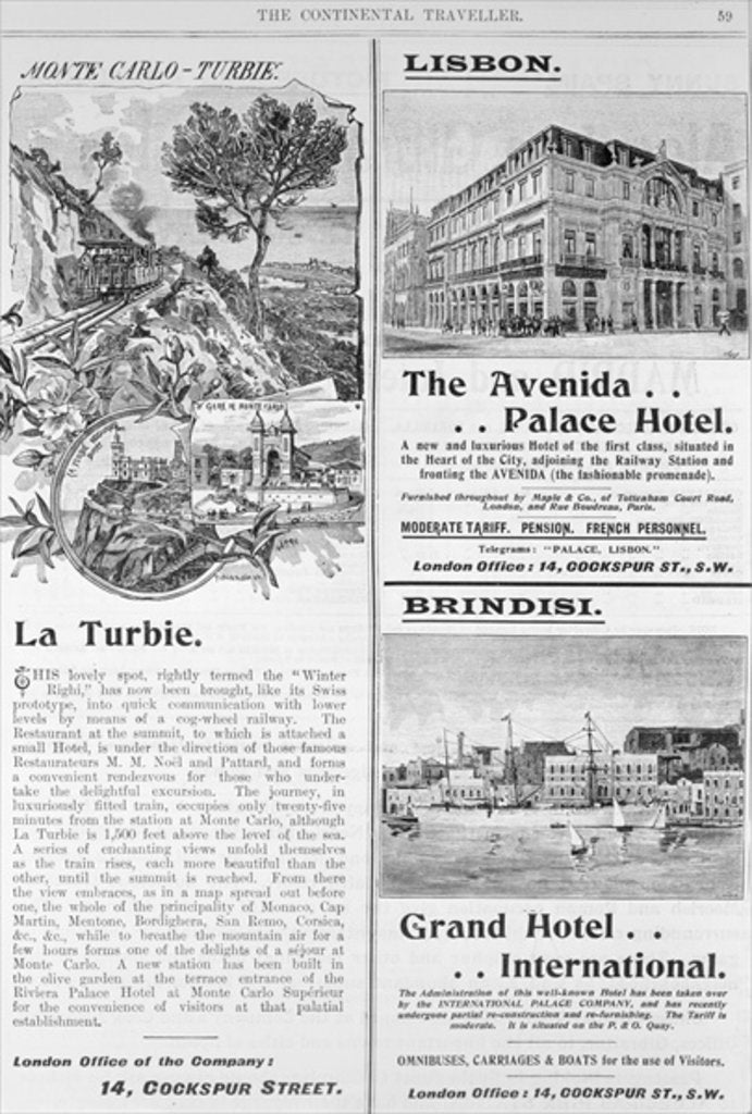 Product details Advertisements for La Turbie Restaurant, The Avenida Palace Hotel and the Grand Hotel International