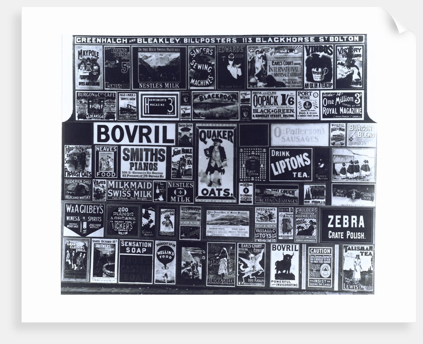Advertising Hoarding in Bolton, Lancashire, photo Alec Davis. Black and white photography. England, c.1898.