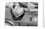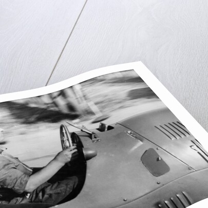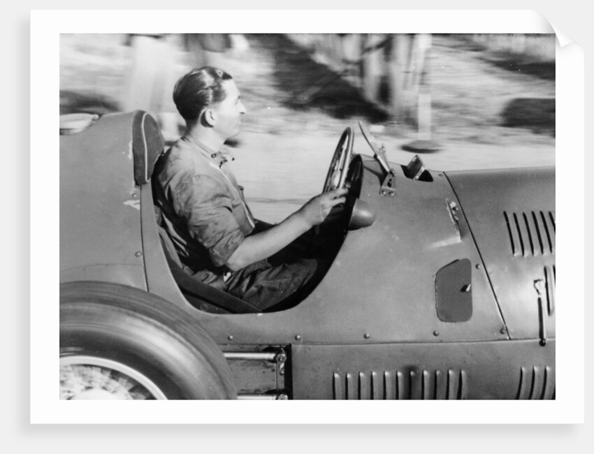 Alberto Ascari at the wheel of a racing car. Enzo Ferrari signed Ascari up in 1949, and he won many races for Ferrari between 1950 and 1952. He was World Champion in 1952 and 1953. In 1952 he won every Grand Prix, and didn't lose a race until the middle of 1953. He performed the unrepeated feat of winning nine straight Grands Prix.