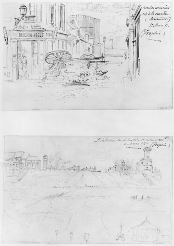 Album of the Siege of Paris, Rue des Accacias et rue de la Carriere 5th March 1871, batteries on the Buttes Montmartre 6th March 1871