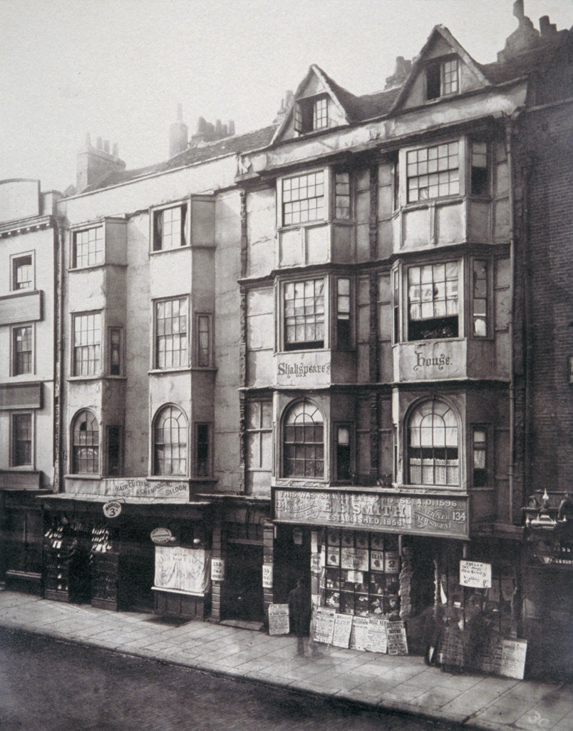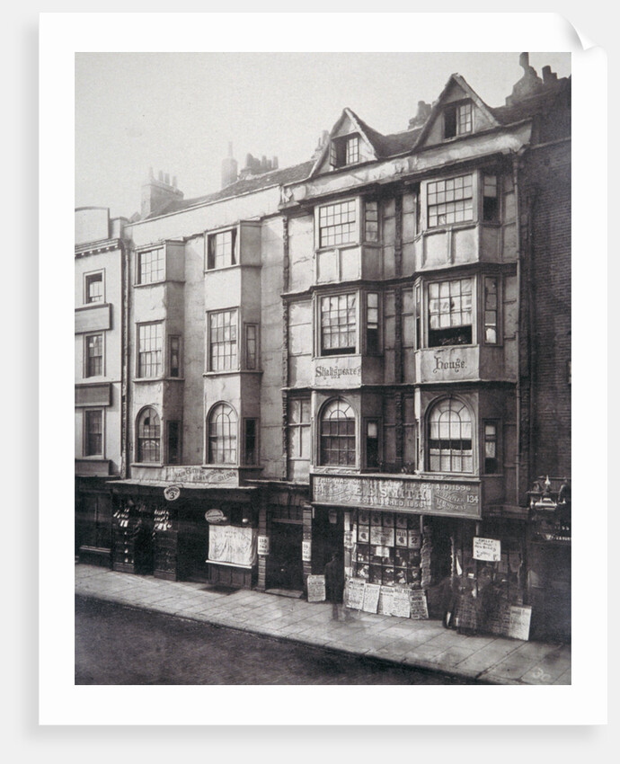 Aldersgate Street, City of London, 1879. View of houses and shop fronts, including Smith's the newsagents (no 134) and a hairdressers.