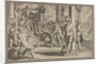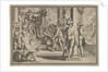 Allegory of Justice (Sanctity of the Law) with a court scene depicting a man being pardoned by a judge, plate XII from Thronus Justitiae, tredecim pulcherrimus tabulis..., 1605.