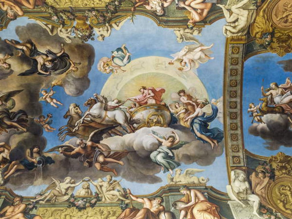 Painting of the vault of the Galerie doree, by Francois Perrier, 1645. Banque de France. Hotel de Toulouse, former hotel de la Villiere, Paris - Hotel de Toulouse, headquarters of the Banque de France -
