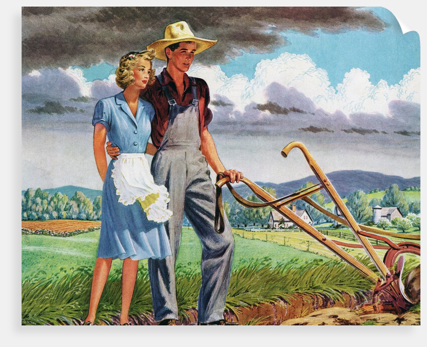 Product details American Couple Standing with a Plow on their Rural Farm.