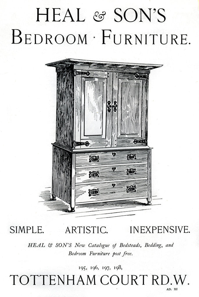 An advertisement for Heal and Son's bedroom furniture, 1898. Plate taken from The Studio magazine, volume 13, no 60 (London, 15th March 1898).