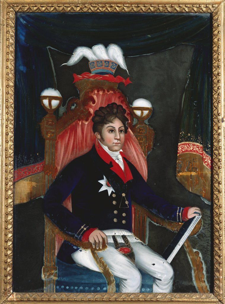 An Anglo Chinese reverse glass painting of George IV as Prince Regent