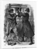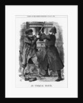 'An Unequal Match', 1881. This cartoon depicts a burglar, armed with pistol and knife, engaged in a rather unequal battle with a police constable who is brave, but armed only with a truncheon. From Punch, or the London Charivari, October 8, 1881.