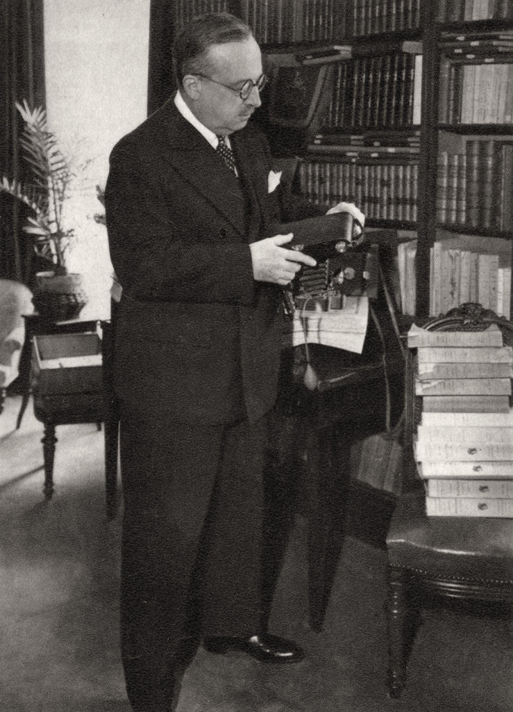 Andre Tardieu, French statesman, 1919. Tardieu (1876-1945) was elected to France's Chamber of Deputies in 1914. In 1919 he was Prime Minister George Clemenceau's lieutenant at the Paris Peace Conference. Tardieu later went on to serve as Prime Minister of France three times between 1929 and 1932. A photograph from Album de Photographies dans L'Intimite de Personnages Illustres, 1860-1925, 9th album, Editions MD, Paris.