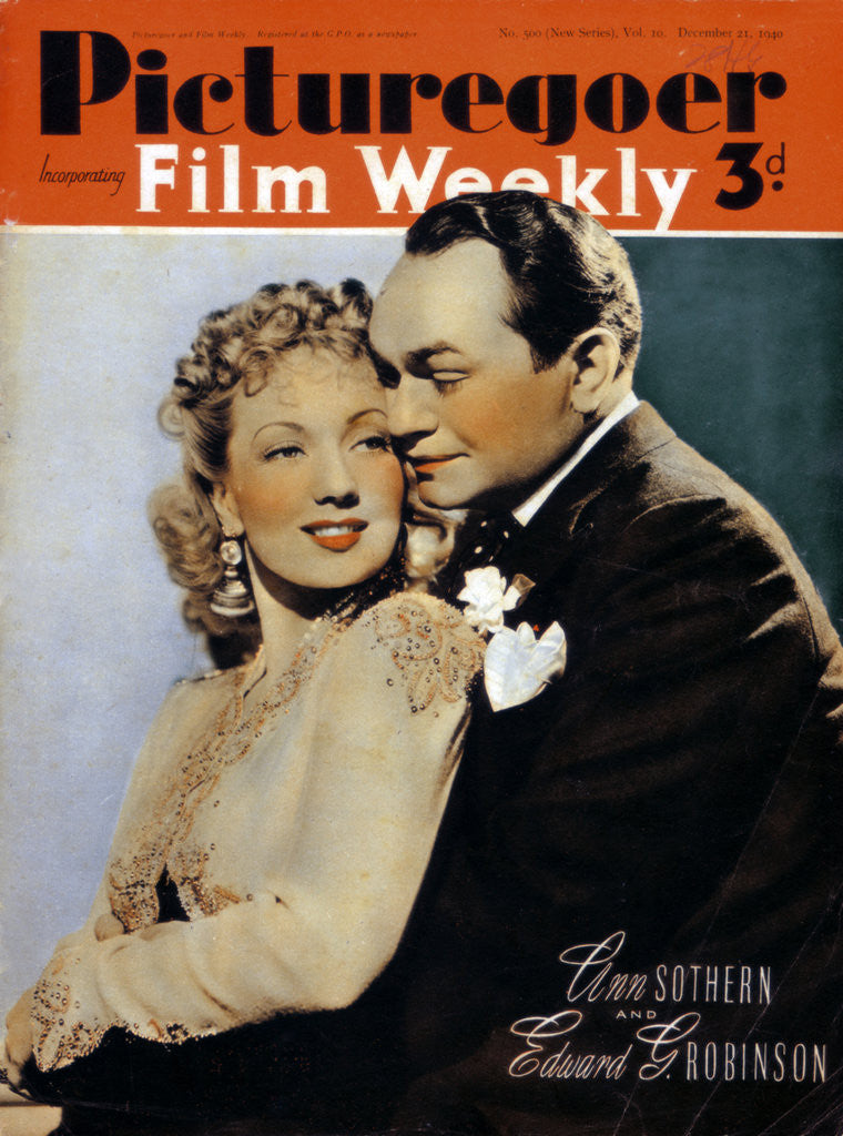 Ann Sothern (1909-2001) and Edward G. Robinson (1893-1964), actors, 1940. Sothern and Robinson in a scene frrom Brother Orchid (1940). From the front cover of Picturegoer magazine (21 December 1940). Cropping restrictions are in place.