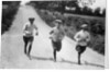Apprentice jockeys jogging down a country lane during training to reduce their weight for the upcoming race at Epsom. 30th May 1922.