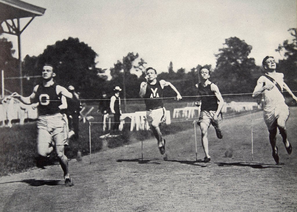 Arthur Duffey, American athlete, running a race, 1902. Duffey (1879-1955) competed in the 100 metres at the 1900 Olympic Games in Paris, finishing fourth.