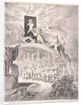 'Titianus redivivius; or the seven wise men consulting the new Venetian oracle. - A scene in ye Academic Grove, No.1', 1797; scene showing artists in front of the Royal Academy at Somerset House in London. Miss Provis stands on a rainbow daubing paint on the face of Titian. Joshua Reynold's ghost appears from the paved floor in the foreground. On the right John Boydell and two companions run off furtively. The seven artists sitting in the light of the rainbow include Joseph Farington, John Opie, and Richard Westall.