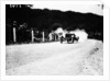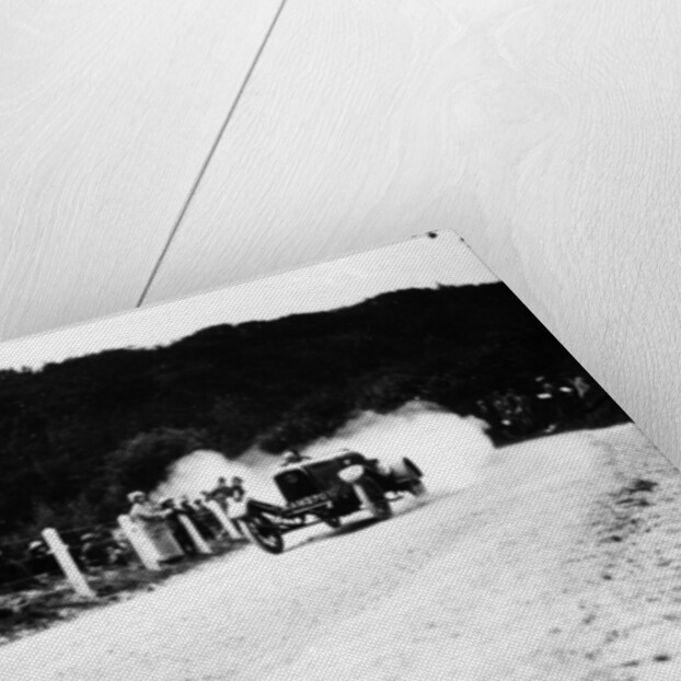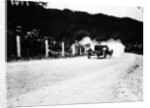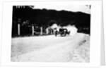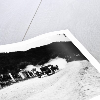 Aston Martin, 1921. A 1.5 litre Aston Martin speeds along a dusty road watched by spectators. The car is probably competing in a hill climb.