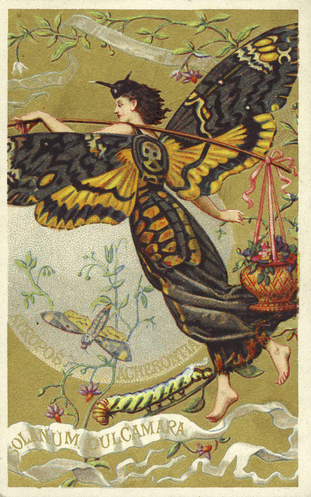 Atropos Acherontia, Solanum Dulcamara, eau des Carmes Boyer Perfume Victorian Trade Card