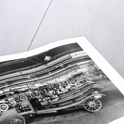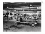 Austin assembly shop, 1914. Cars at various stages in the construction process. Some appear to be complete, while others consist of only the chassis.