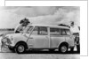 Austin Seven Countryman, c1961. In 1957 BMC commissioned Alec Issigonis to design a new small car, following his success with the Morris Minor. Popularly known as the Mini, this innovative model popularised many design features still common today. Driving the front wheels, its transverse mounted engine, with the gearbox beneath, removed the space-consuming transmission tunnel. Styling was minimalist, in sharp contrast to the transatlantic fins and chrome of the fifties. The Countryman, as pictured here, was an estate version of the car.
