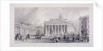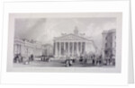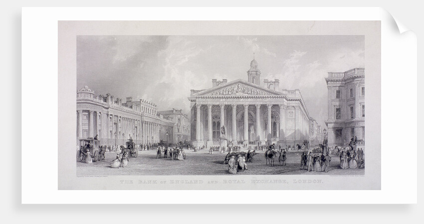 View of the Bank of England and Royal Exchange on the corner of Threadneedle Street and Cornhill, London, 1850; with a street scene.