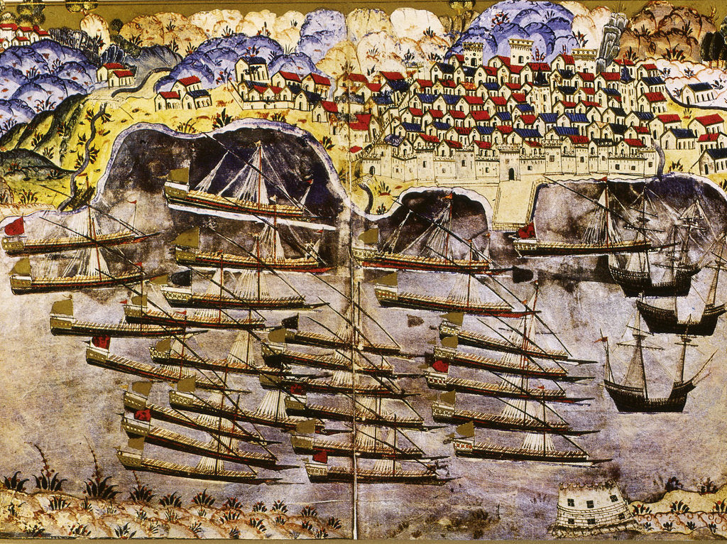 Barbarossa's fleet wintering in the French harbour of Toulon, 1543, Mid of 16th century. Found in the collection of Topkapı Palace, Istanbul.