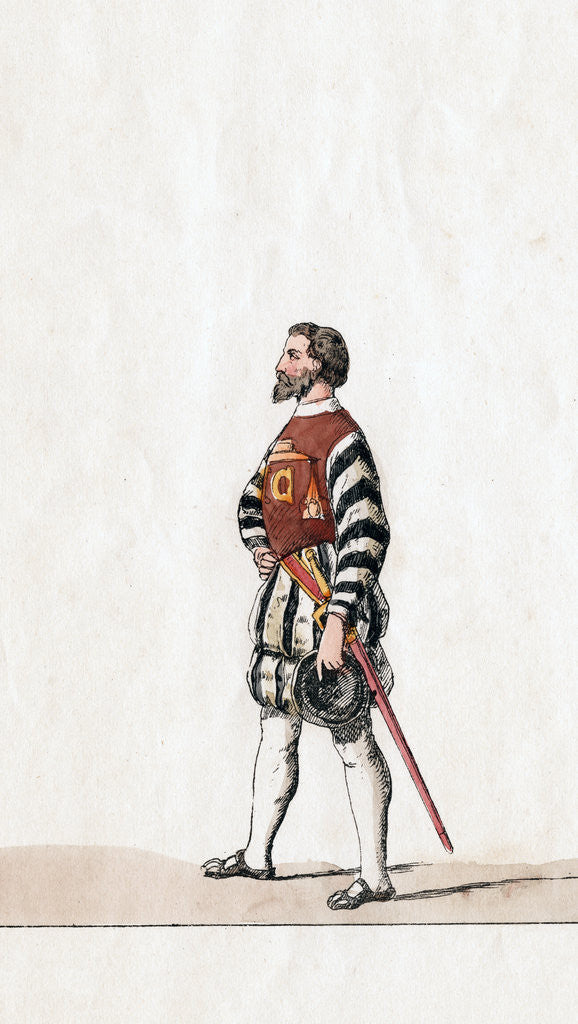 Baron, costume design for Shakespeare's play, Henry VIII, 19th century. A 19th-century costume design of a man with a cardinal's hat emblem on his doublet, for William Shakespeare's (1564-1616) play, Henry VIII.