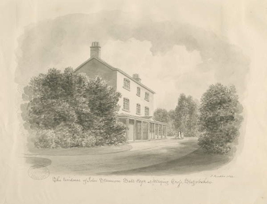 Baswich Village - house of John Stevenson Salt, Esq. : sepia drawing, 1842