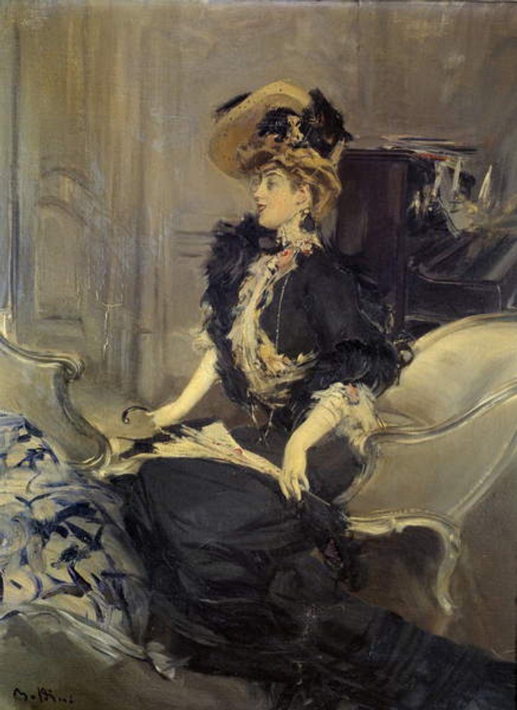 Product details Belle Epoque: 'The Visit' Elegant Young Woman In Evening Dress, 20th century