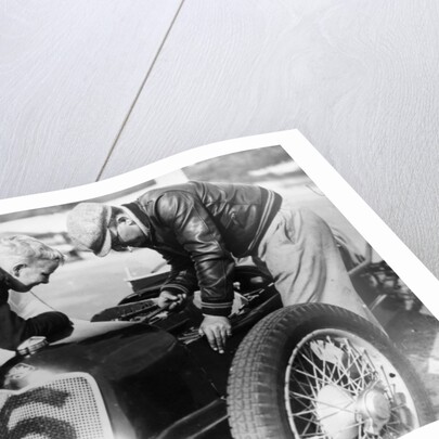 Billy Cotton Senior and Junior with a Riley. They are tinkering with the engine of the car. In addition to being a well-known band leader, the senior Cotton was a keen racing driver, competing in cars and on motorcycles in the years between the wars.