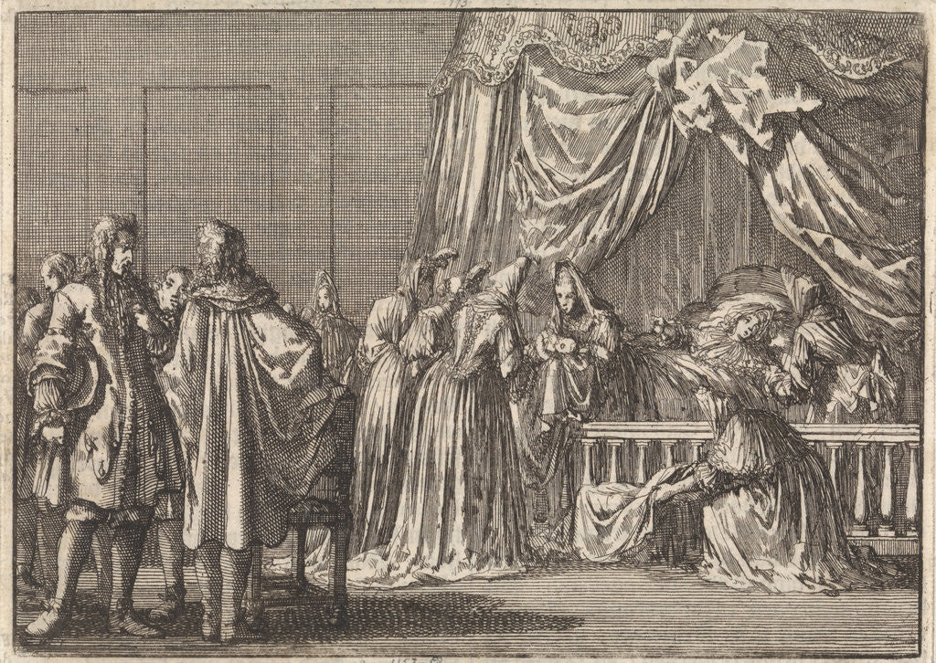 Birth of the son of King James II of England, 1688, Jan Luyken, Pieter van der Aa (I), 1698