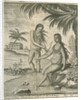 Landscape with two native American figures showing bleeding by arrow wounds as described by Lionel Wafer (d.1705), Welsh surgeon and buccaneer: 'It so happen'd, that one of Lacenta's Wives being indisposed, was to be let Blood; which the Indians perform in this Manner: The Patient is seated on a Stone in the River, and one with a small Bow shoots little Arrows into the naked Body of the Patient, up and down; shooting them as fast as he can, and not missing any Part. But the Arrows are gaged, so that they penetrate no farther than we generally thrust our Lancets...'. Engraved by John Savage (active 1680-1700). Plate facing p.285 of: A new voyage and description of the Isthmus of America. Giving and account of the Author's abode there...by Lionel Wafer; within volume 3 of A collection of voyages..., by William Dampier et.al., 4 volumes, (London, James and John Knapton, 1729). Copy belonging to Sir Joseph Banks (1743-1820), President of the Royal Society. Lionel Wafer lived among the Cuna Indians of the Isthmus of Darien [Panama] in 1681, having been injured while on an expedition with William Dampier (1651-1715).