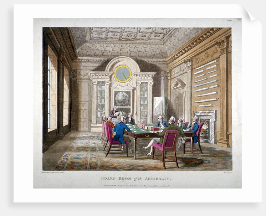 Boardroom of the Admiralty with a meeting in progress, Whitehall, Westminster, London, 1808.