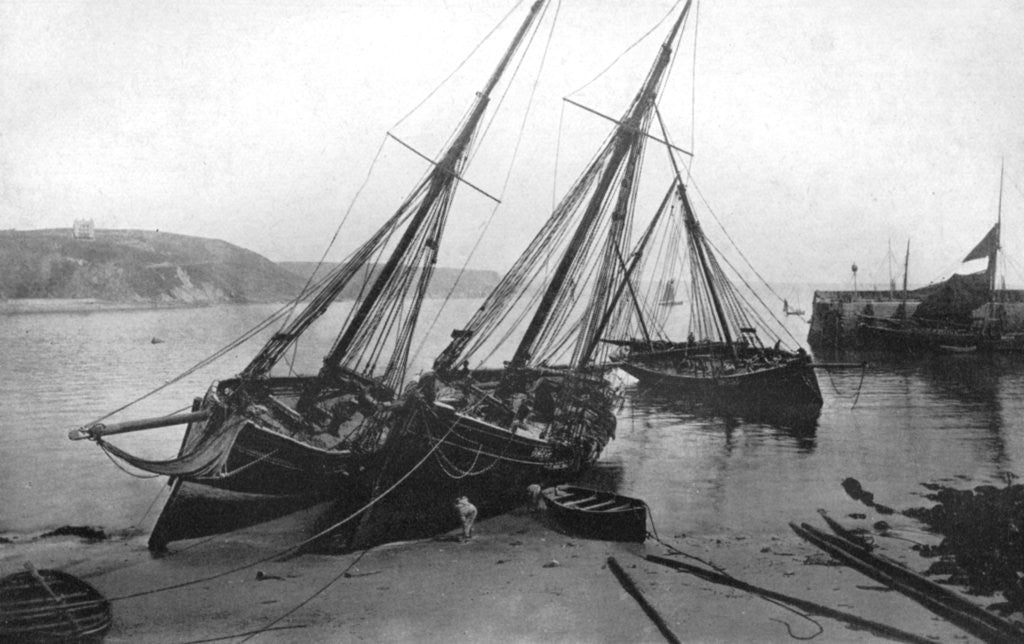 Boats in Tenby harbour, Pembrokeshire, Wales, 1924-1926. A print from Hutchinson's Britain Beautiful, edited by Walter Hutchinson, volume III, 1924-1926.