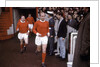 Bobby Charlton leads Manchester United team mates including Nobby Stiles; onto the pitch for a league match at St James Park. Final score: Newcastle United 2-2 Manchester United